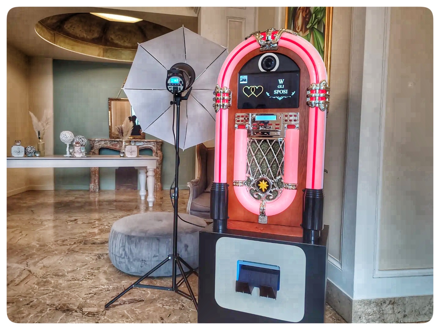 Che dire del modello “Jukebox”…è unico. Progettato e ideato da noi è l’unico della sua specie. Ha tutte le funzioni degli altri modelli ma anche quelli del jukebox vero e proprio. L’unico ad avere lo schermo in orizzontale. Anche questo modello può essere posizionato in ogni tipo di ambiente. Compatto e inebriante.